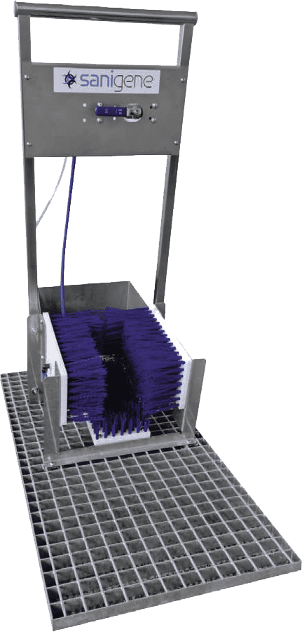 Sanigene HydroGuard Boot Disinfecter & boot washer is a chemical spraying system perfect for disinfecting shoes and boots on farms. Spraying with a disinfectant is an inexpensive and effective way to prevent contamination of livestock.