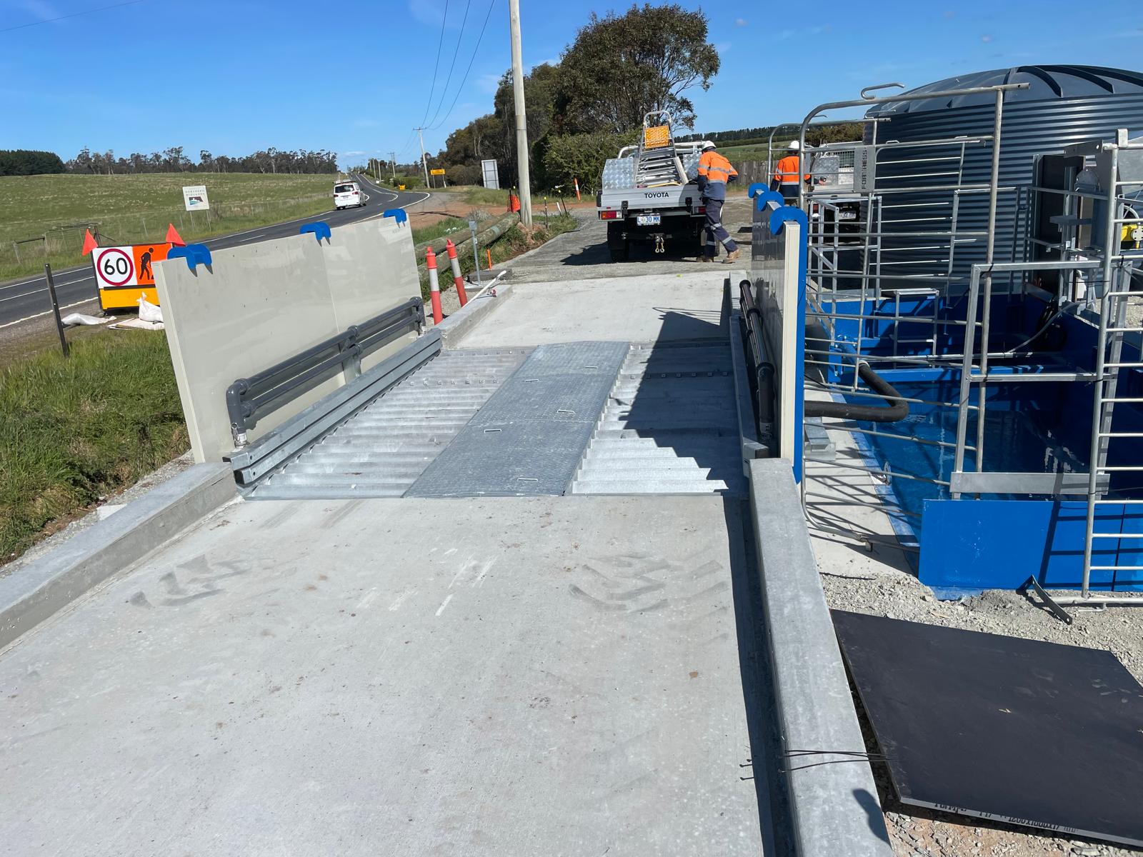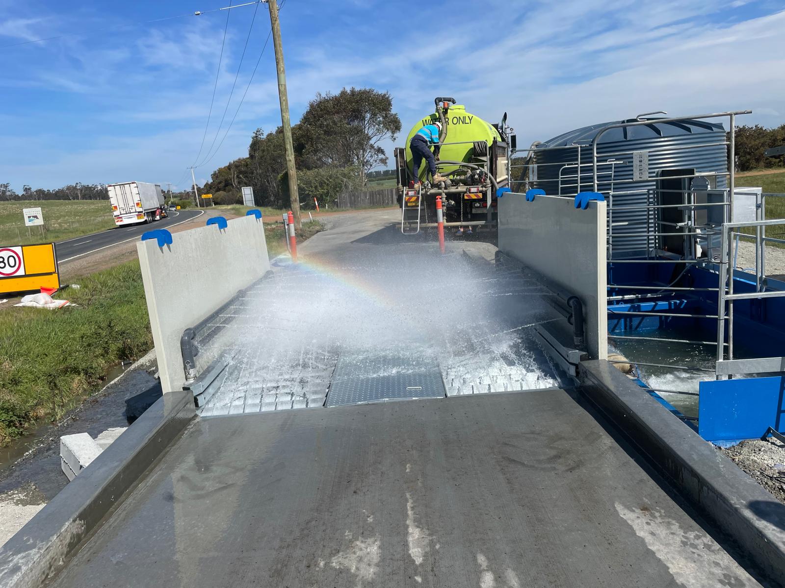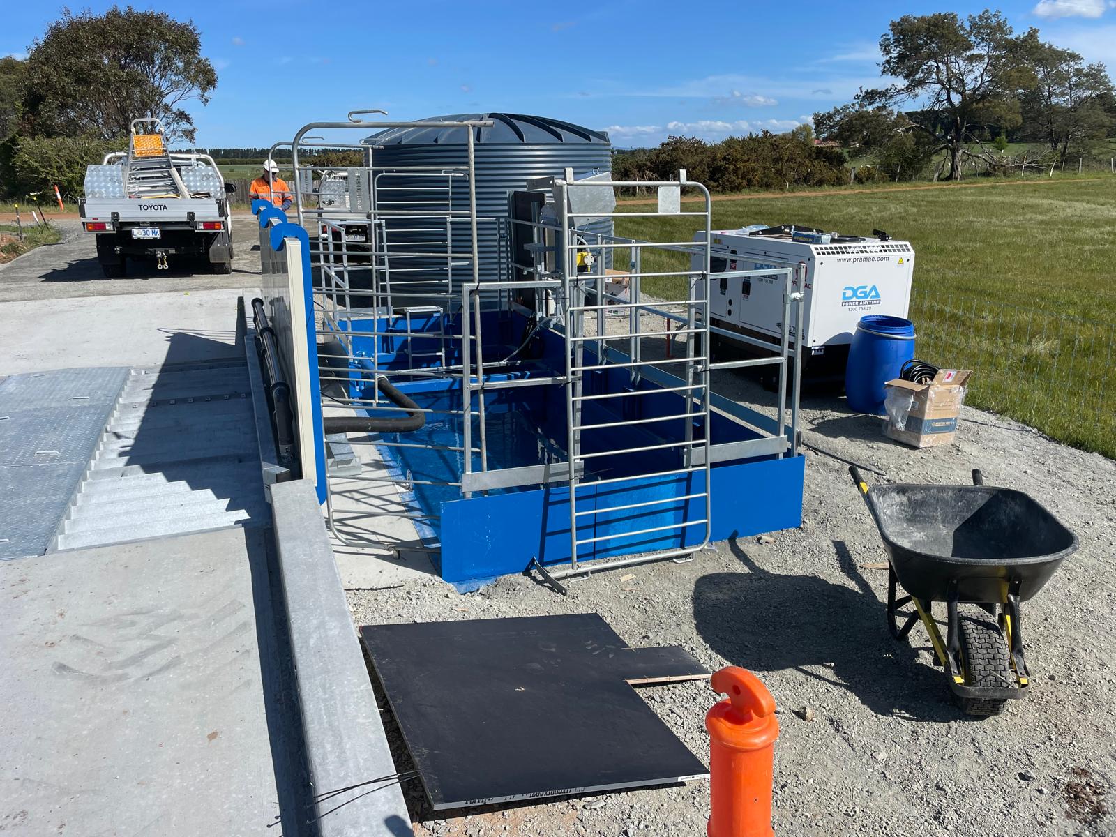 The drive-through wheel bath is a solution for areas without access to reliable water and electricity. The lack of moving parts means it is relatively maintenance free and only requires removal of sediment build-up.